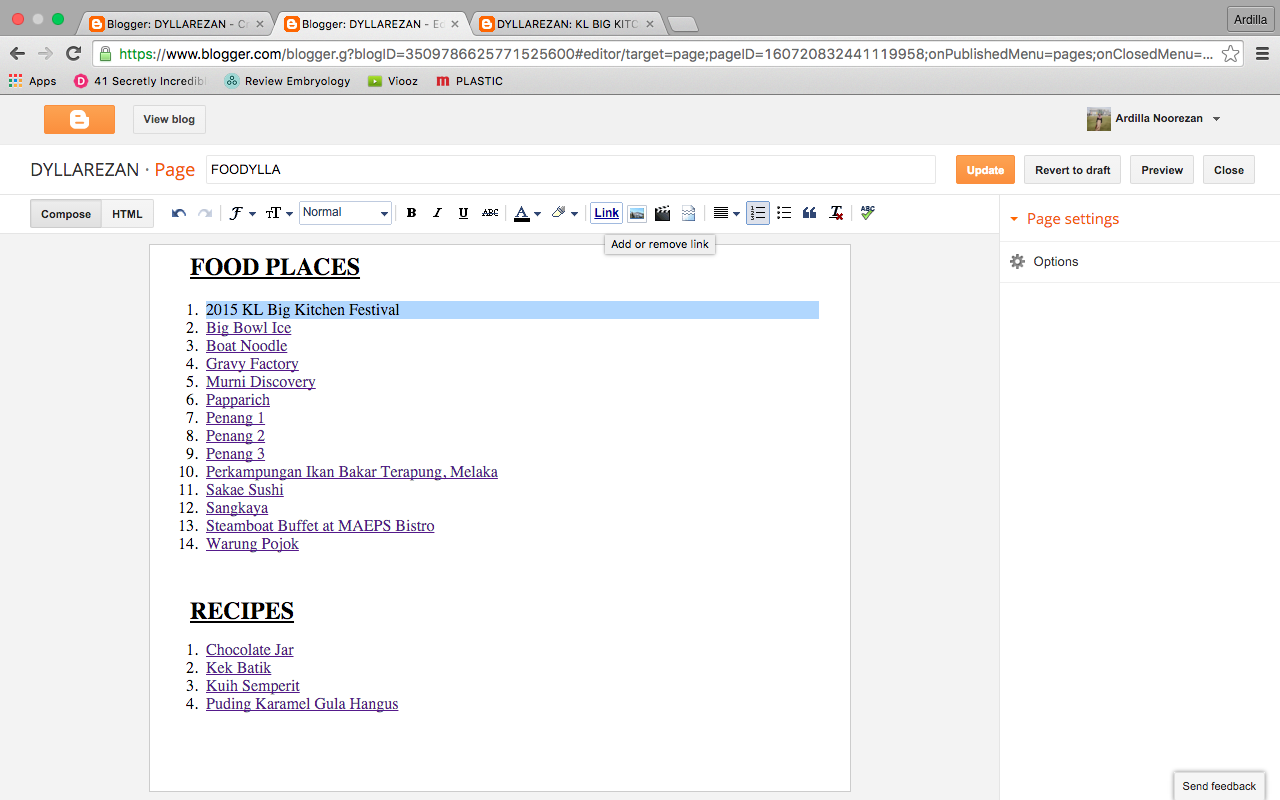 3. A new page will be opened, and it's like a normal 'new post' page. But the difference is this page won't be posted in your 'home'. As for example here, I wanna make a backlink to '2015 KL Big Kitchen Festival'. So, open a new page of where the post is and copy the link above (as you can see in the second photo below).